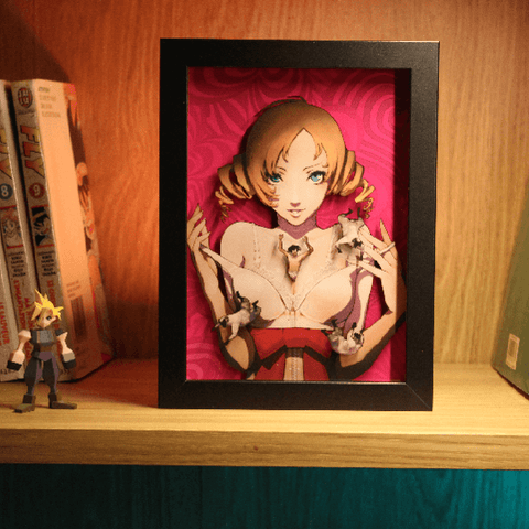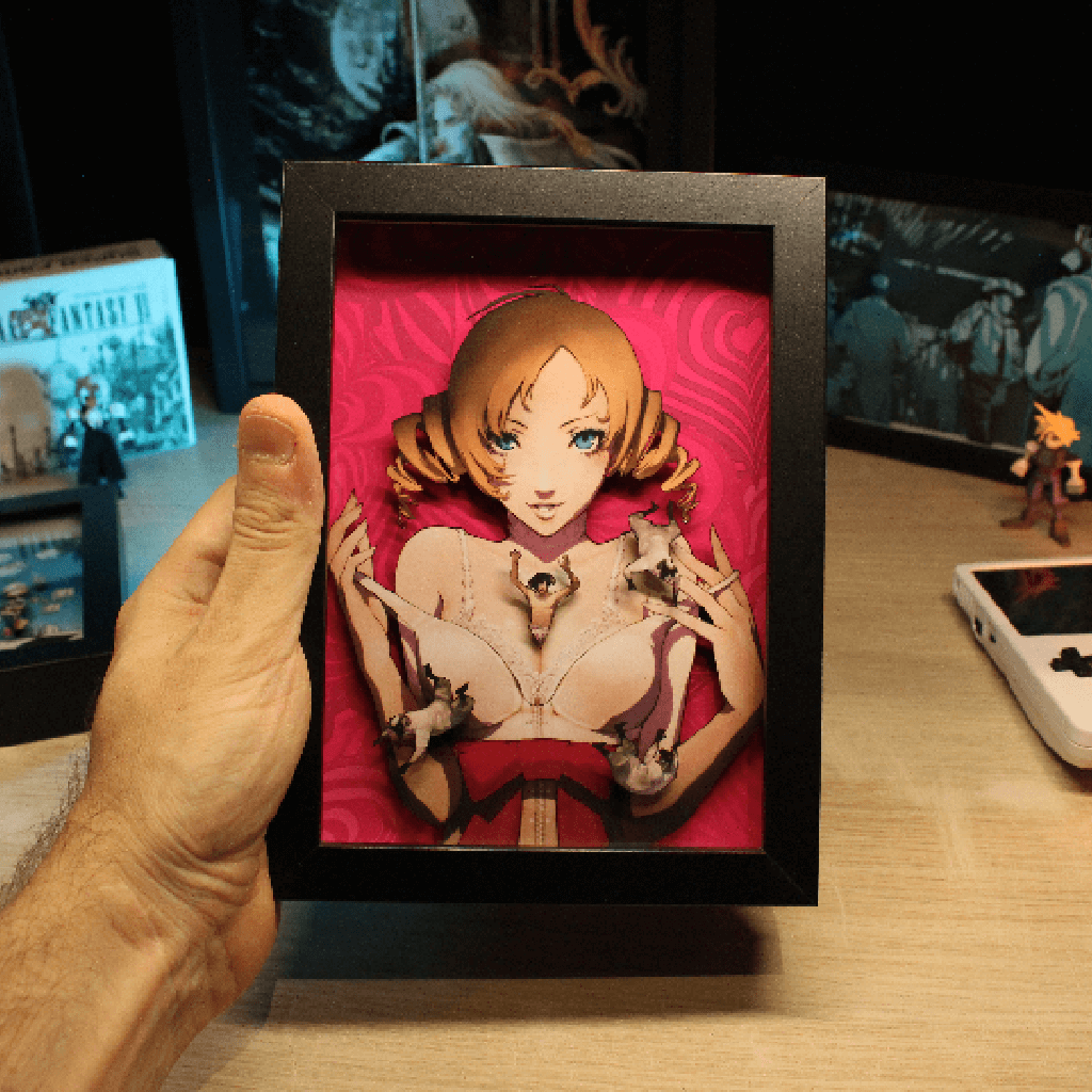 Ce diorama inspiré de Catherine capture l’essence même du jeu : sulfureux, intriguant, et délicieusement stylisé. Entre blocs oniriques et silhouette envoûtante, on retrouve toute la tension sensuelle du jeu dans une pièce déco qui attire tous les regards. Un must pour les amateurs de charme et de casse-tête psychologiques.