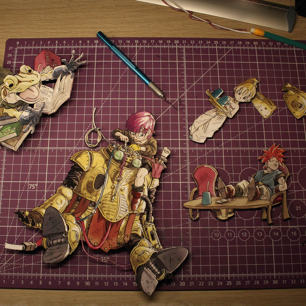 ⚙️ Ce diorama s’inspire de l’art iconique d’Akira Toriyama, mettant en scène l’équipe au complet, soudée autour de la jeune fille concentrée en train de réparer Robo, symbole d’amitié, de technologie et d’espoir.