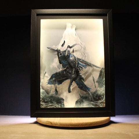 Plongez dans l’abîme aux côtés de Knight Artorias, immortalisé dans ce diorama lumineux saisissant. Épée gigantesque, posture menaçante et cape en lambeaux : tout le poids de sa chute transpire dans cette scène sombre et majestueuse. Une œuvre qui ravira les fans du lore de Lordran.