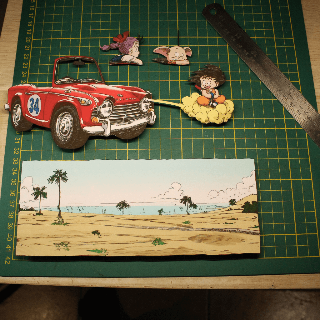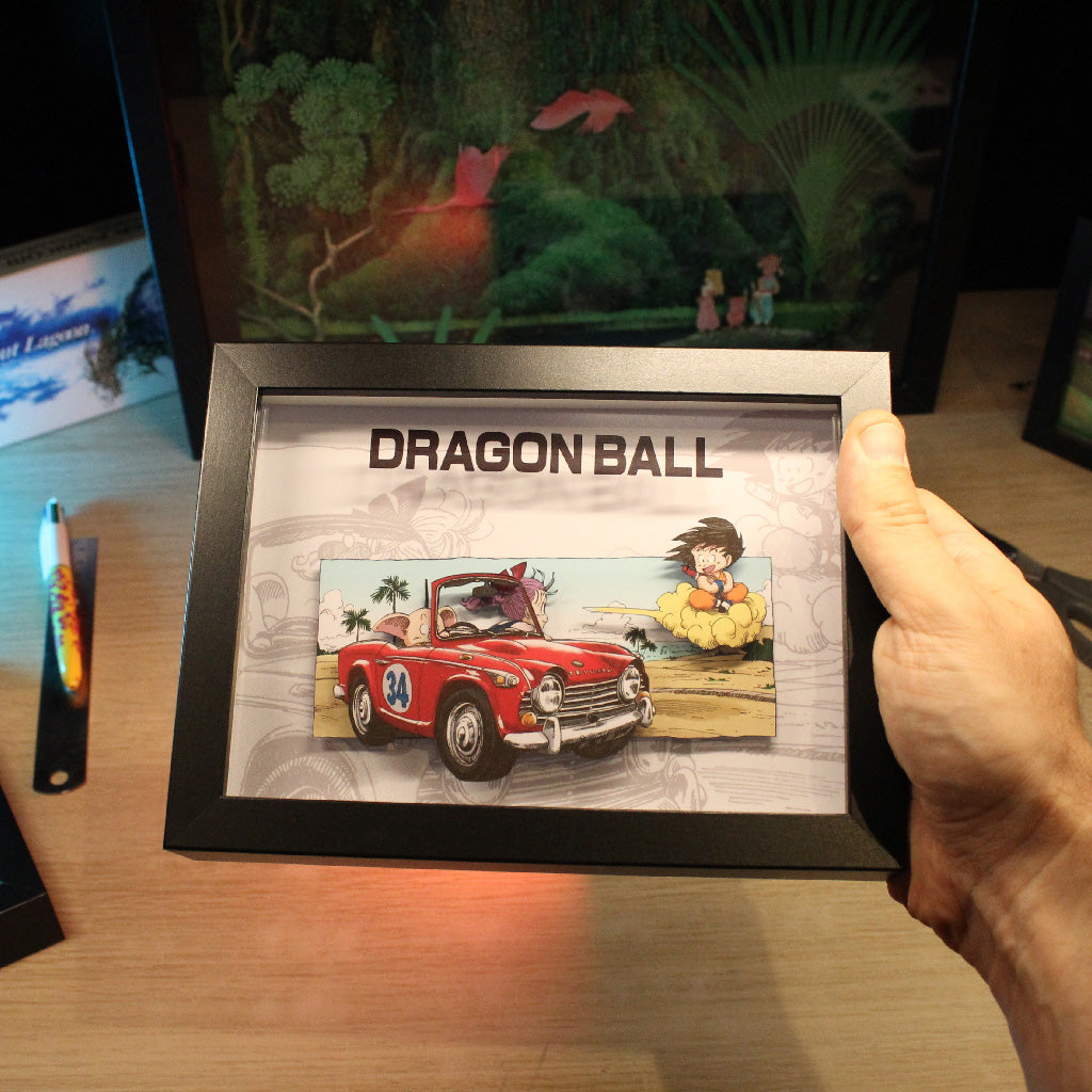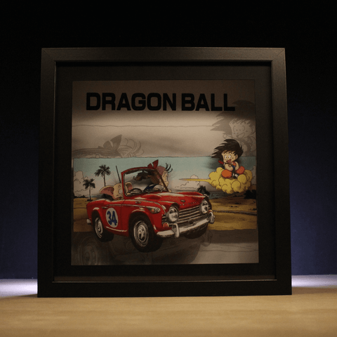 Ce diorama lumineux met en scĂšne Bulma et Oolong profitant dâun moment paisible Ă bord de leur voiture, pendant que Goku les suit depuis son nuage magique. Une ambiance rĂ©tro pleine de charme qui rappelle les dĂ©buts pleins dâhumour de la sĂ©rie.