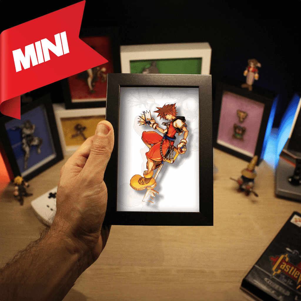 Ce diorama Pocket met en scène Sora en pixel art, brandissant fièrement sa Keyblade. Un clin d’œil magique à un univers où l’amitié triomphe des ténèbres, parfait pour raviver les souvenirs des premières traversées entre mondes Disney et Final Fantasy.