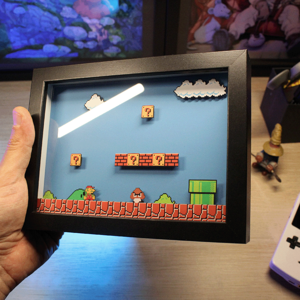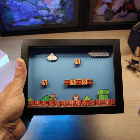 Redécouvrez la magie du tout premier Super Mario Bros. avec ce diorama en relief, où Mario bondit de bloc en bloc pour sauver le Royaume Champignon.