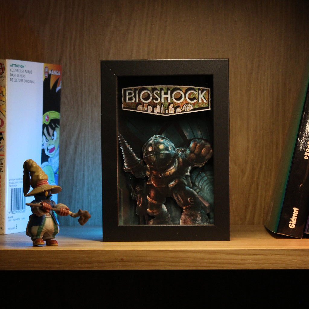 Fan d’univers sombres, de Big Daddy et de l’ambiance unique de la saga culte ? Ce diorama Bioshock capture à merveille l’atmosphère oppressante et rétro-futuriste du chef-d’œuvre vidéoludique. Entre art mural 3D et décoration geek, c’est le cadeau idéal et original pour tout passionné de jeux narratifs et immersifs.